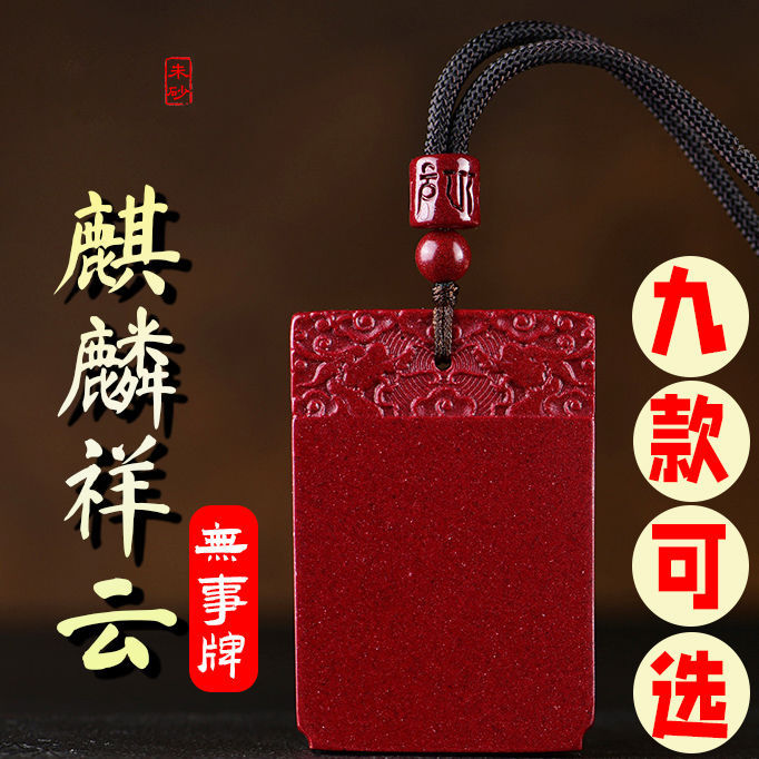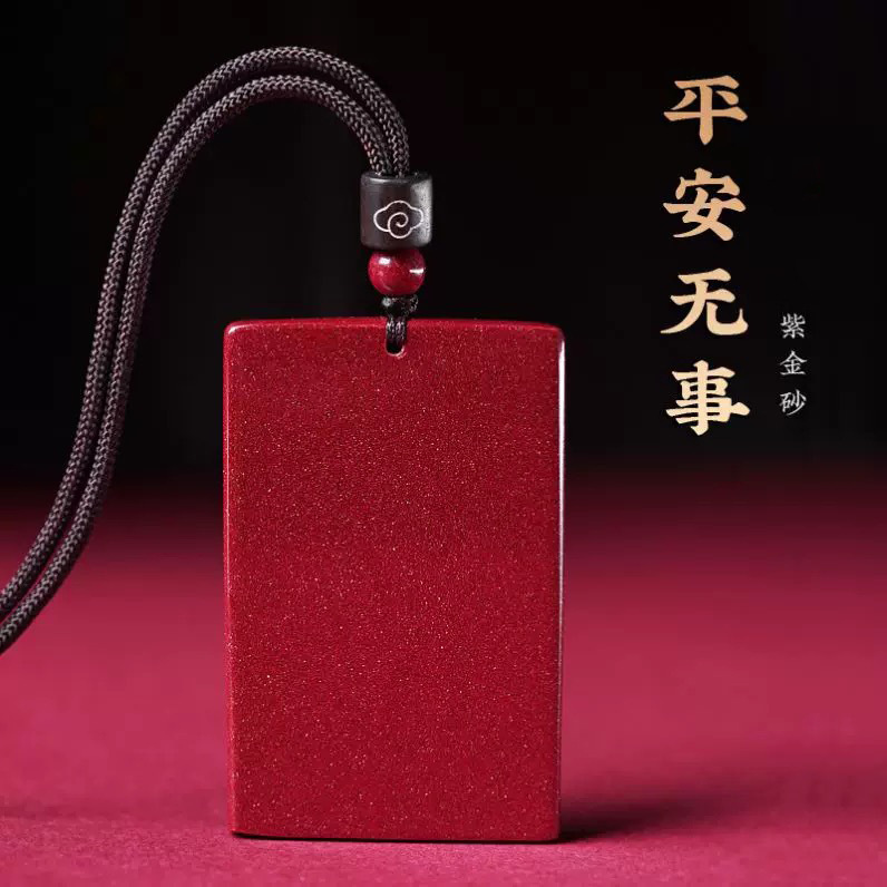 本物の朱砂無事牌ペンダント、低含有量紫金砂平安無事牌ネックレスペンダント、飾り