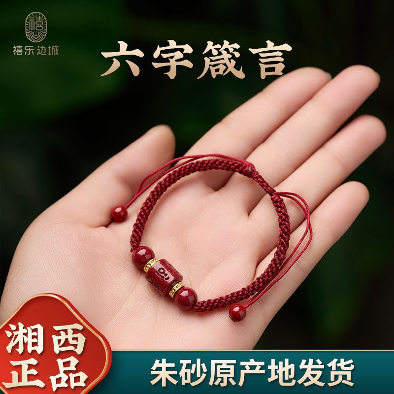 湖南辰砂本物の六文字マントラ赤いロープブレスレット女性用辰年干支年カップル手織り幸運ビーズ