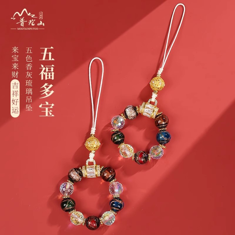 香灰瑠璃小五福携帯チェーンの車はキーチェーンの観光地区の同じタイプのペンダントを掛けます。