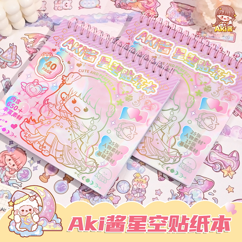 女の子用のステッカーもあちゃんの星空の四角いコイルのステッカー本の美しいカットフリーの手帳素材のステッカーです。