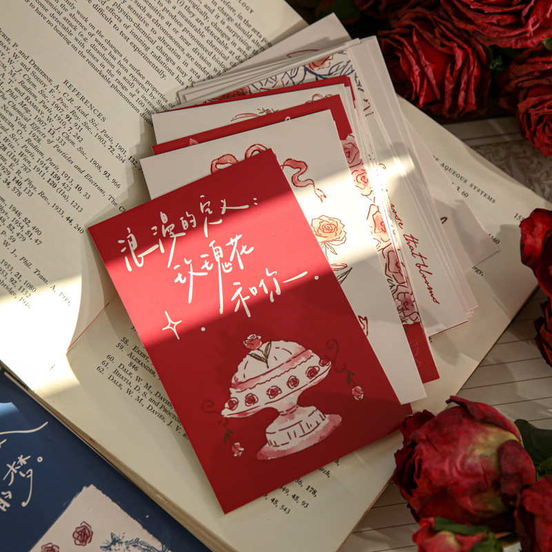 薔薇自白詩シリーズ箱入りはがきロマンチック薔薇テーマ学生手書き記念メッセージはがき