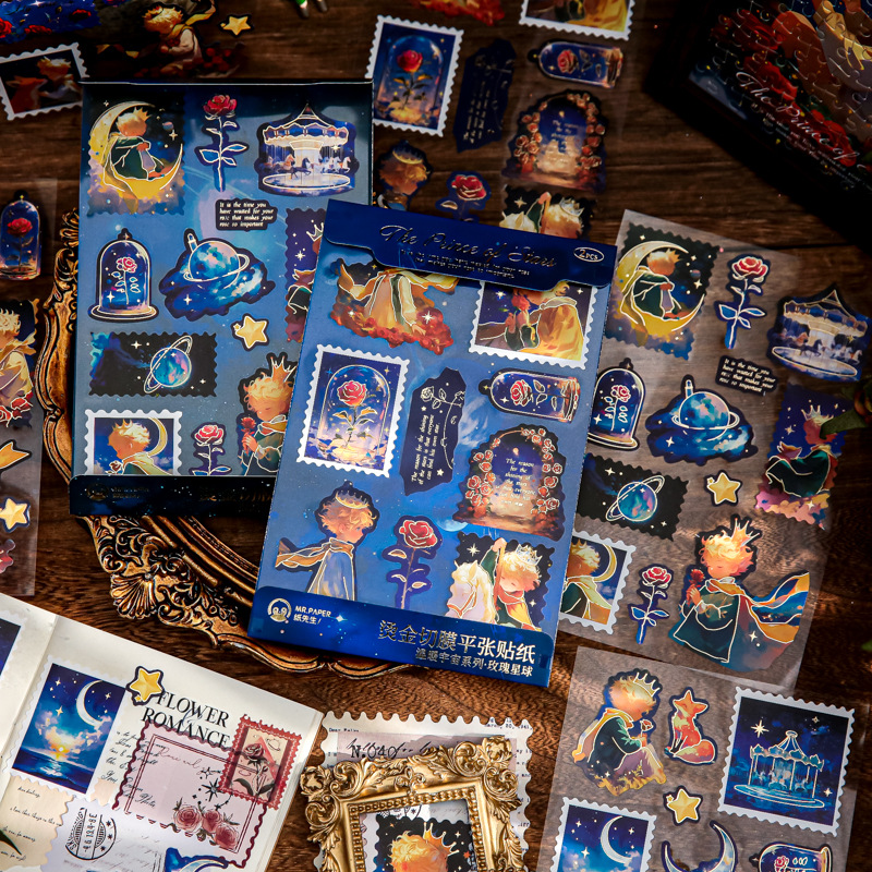 暖か宇宙シリーズ箔押しフラットステッカークリエイティブキャラクター装飾手帳素材レトロ切り膜異型ステッカー