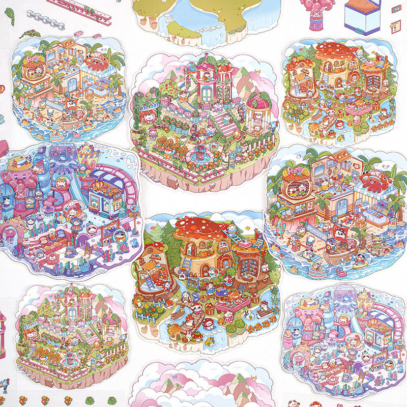喵星夢境シリーズかわいい風造景シールネット赤模擬小屋画素ゲームdiy手作りシール