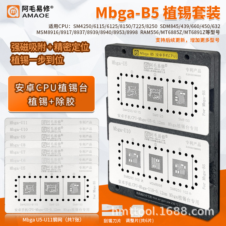 阿毛易修/Mbga-B5植錫台安卓携帯電話位置決め板鋼網cpu植錫除糊