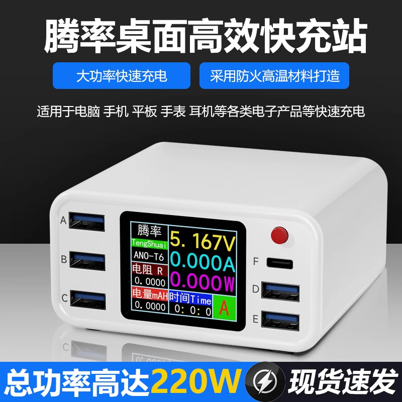 Shanba T6 デジタル ディスプレイ マルチポート高速充電器デジタル ディスプレイ電圧と電流の監視マルチデバイス デスクトップ充電器