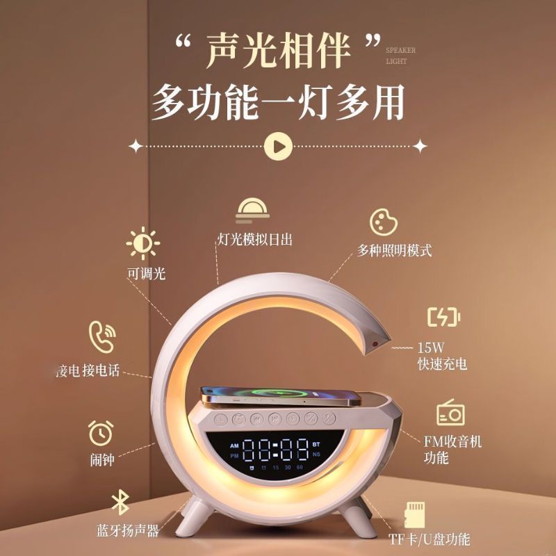 Bluetooth スピーカー、ワイヤレス充電、多機能、高価値、常夜灯、時計、誕生日プレゼント、テーブルランプ、オーディオ