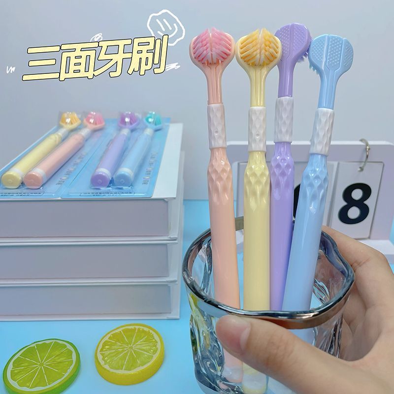 大人用三面歯ブラシ、柔らかい毛、男性用と女性用の特別な舌苔スクレーパー、立体的な死角のないクリーニング、ファミリーサイズのカップルU字型ブラシ
