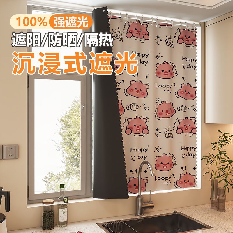 賃貸住宅の寝室の出窓用の完全遮光カーテン、伸縮ロッド付きのパンチングなし、小さな窓を遮断するためのショートカーテン