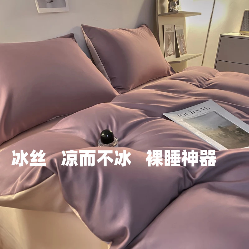 夏用ライト高級アイスシルク4点セット両面洗いシルクシーツと掛け布団カバー夏涼しい学生寮3点セット