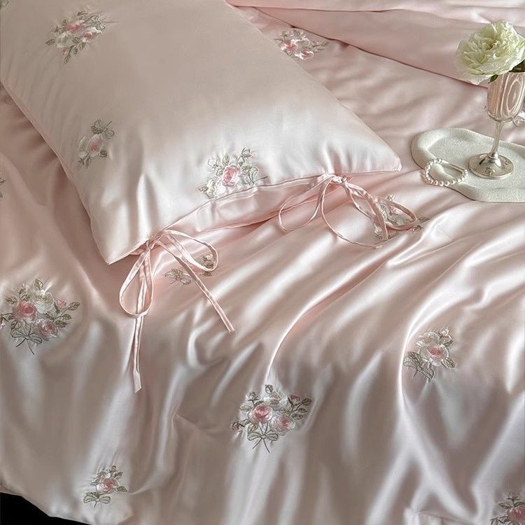 ins風ウォッシュシルクアイスシルク夏ライト高級プリンセススタイルキルトカバーシーツ4点セット高品質ベッド3点セット