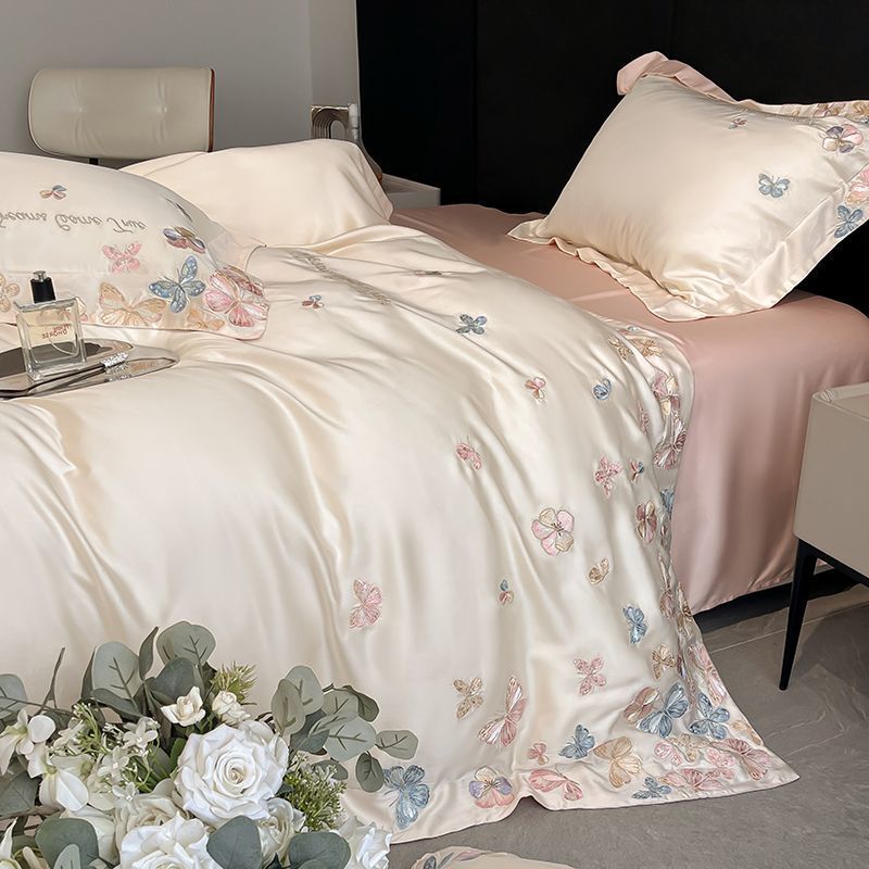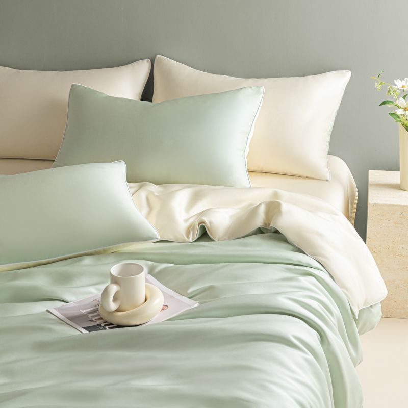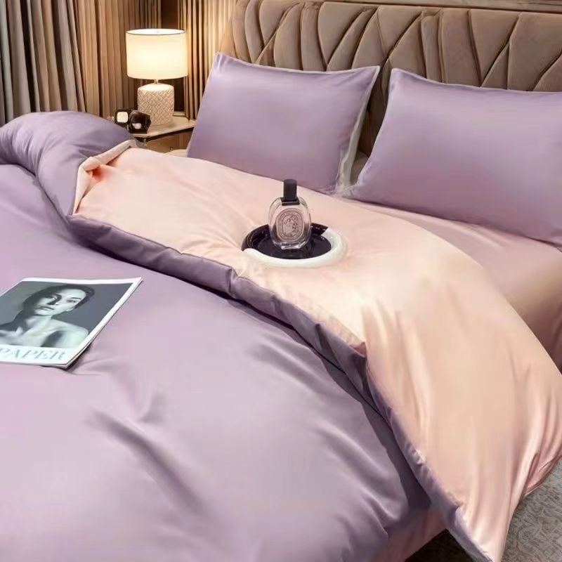 ライトラグジュアリー・ハイエンドクラスAアイスシルクベッド4点セット、夏用シルキーヌードスリーピングキルトカバー3点セット、テンセルシーツ4