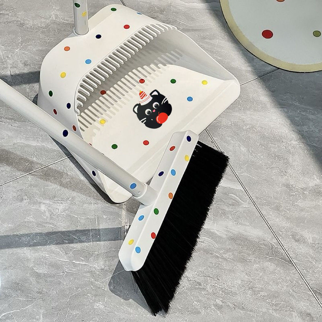 漫画猫水玉模様の歯付きほうきとちりとりセット組み合わせ家庭用新しいほうきは、髪をこすらずに掃除できます。