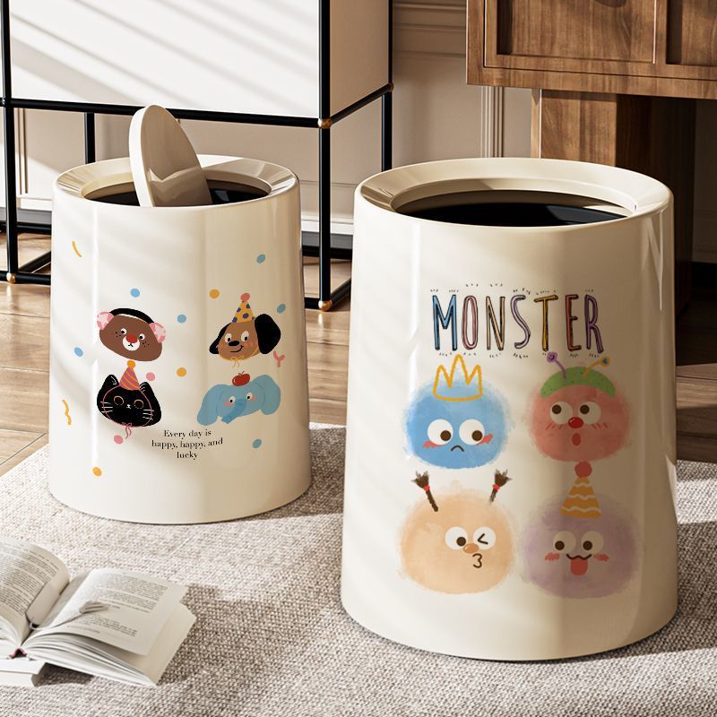 レトロなスタイルのドーパミンゴミ箱家庭用二層厚みのある大容量ゴミ箱寝室キッチン専用紙バスケット