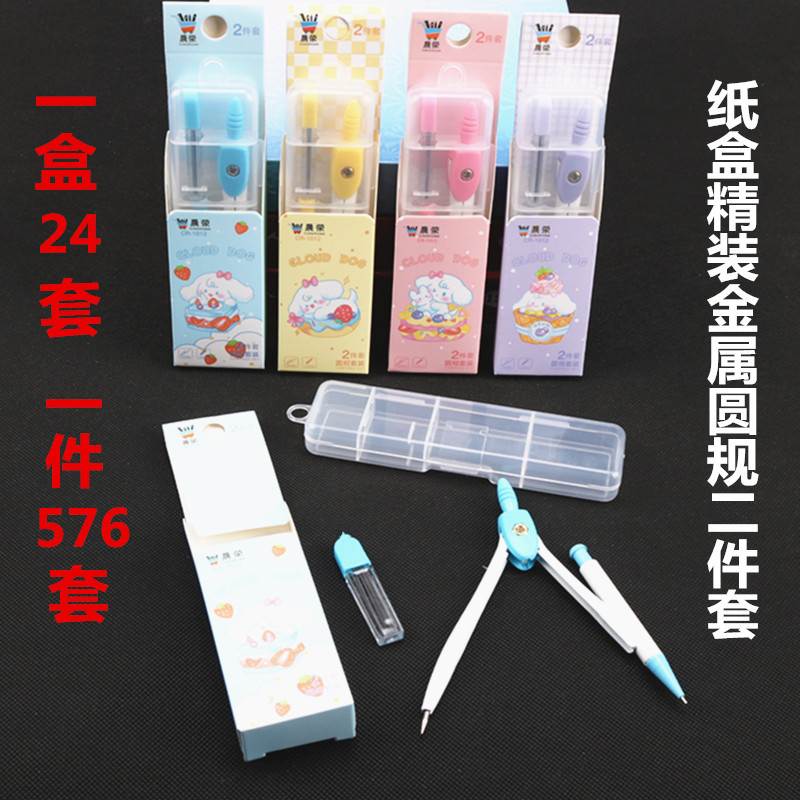 卸売り学生朝栄ファッション紙箱精装金属コンパス二点セット学生文房具製図器1012