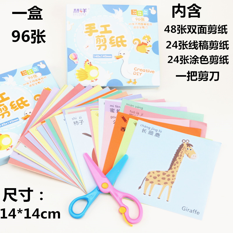卸売り慧洋14*14cm児童手作り切り紙セットdiyカラー折り紙幼稚園塗装両面線原稿