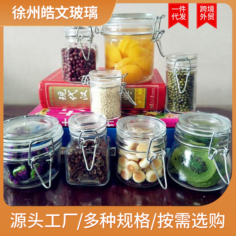 卸売り多規格耐高温ガラス密封缶透明バックル貯蔵缶キッチン厚い茶葉缶キャンディー缶