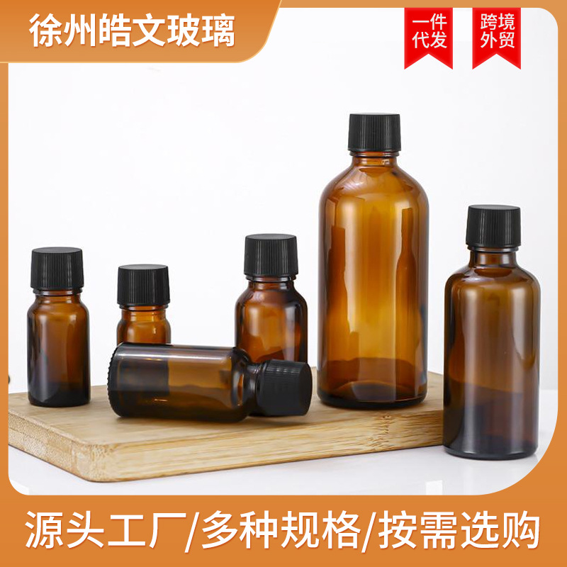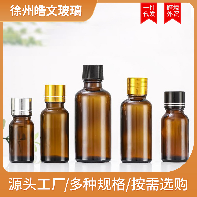 卸売茶色エッセンシャルオイルボトルガラス空ボトル5-100ml化粧品包装ボトル凹栓フラットトッププラグプラスチックキャップ