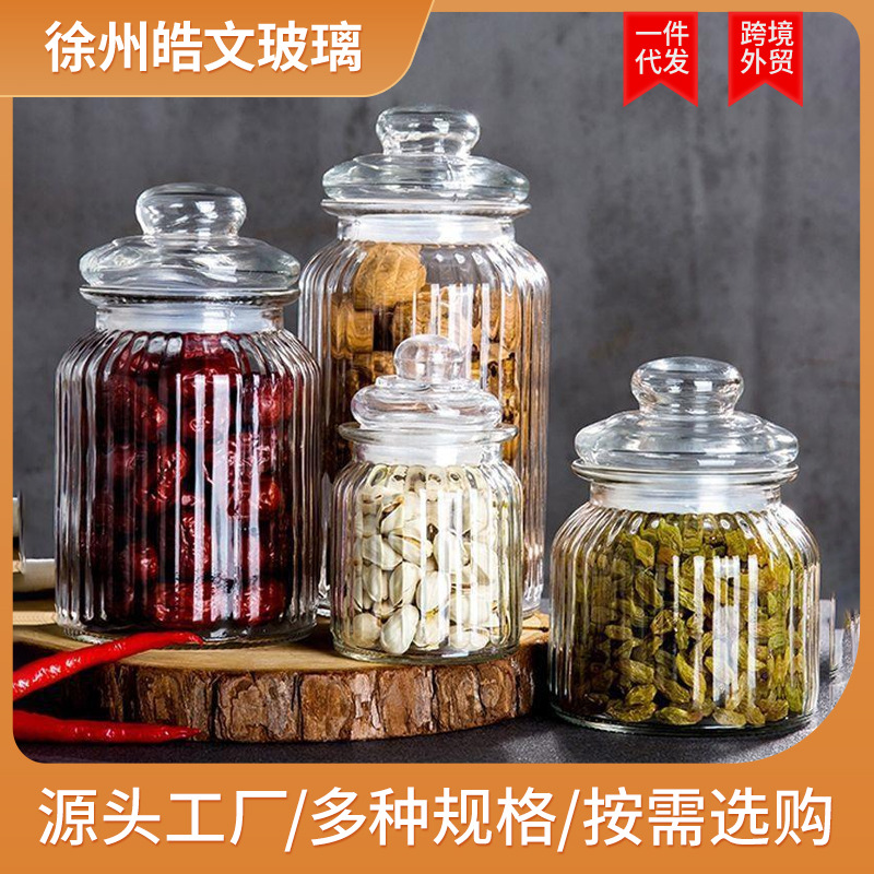 ガラス密封瓶 シンプルな丸型ストライプ 大容量 キッチン収納 保存容器 透明 食品グレード