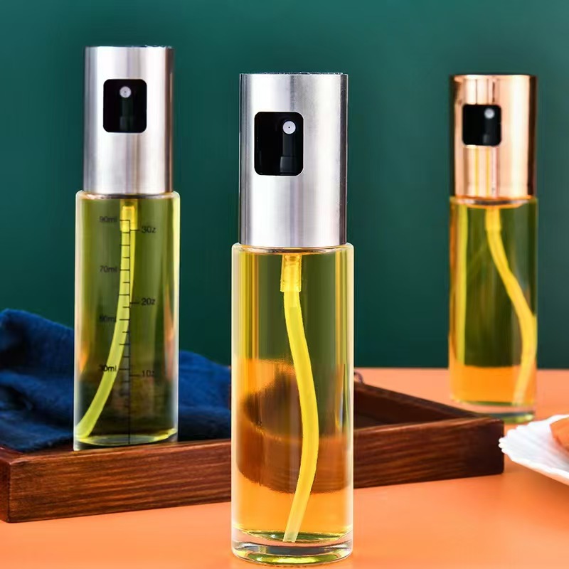 新商品のオイルポットの噴水両用キッチン家庭用オイルコントロールガラスのオイルボトルの空気フライヤーは霧化オイルポットを押します。
