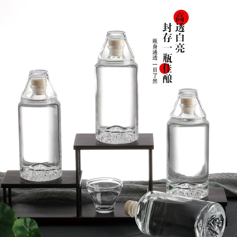 結晶白材透明方ガラスボトル100ml山底観雲小酒瓶空瓶1斤入り密封酒瓶