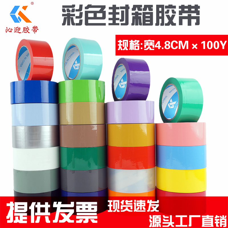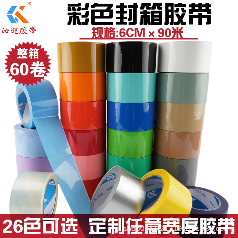 カラー封緘テープ 4CM 90m フルボックス卸売透明包装テープ物流外国貿易識別テープ高粘度