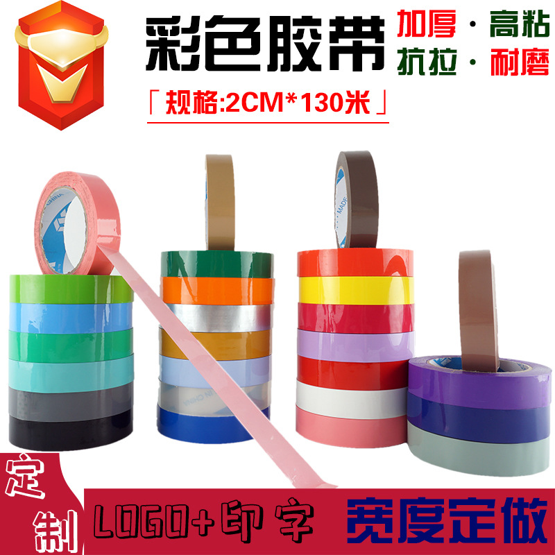 カラフルな透明テープで箱を封じる 幅2.5CM 130m 赤、黄、青、緑、黒、白、紫、茶色、コーヒー色の梱包用高粘度テープ