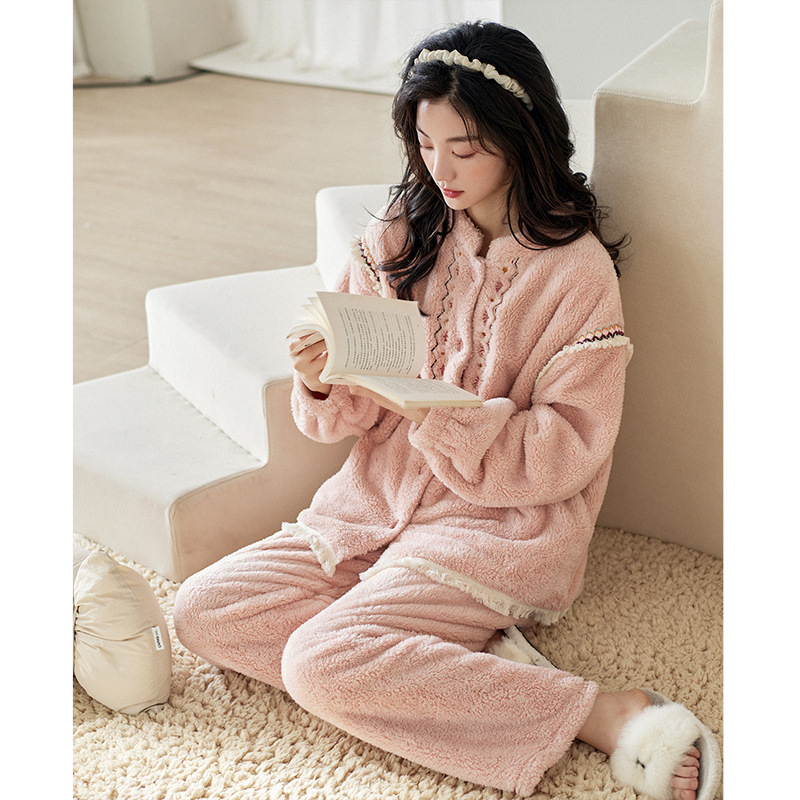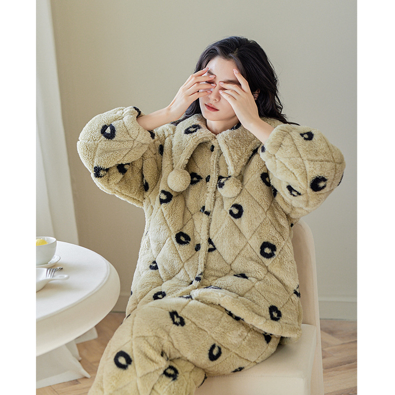 【静電気防止】綿を挟んだパジャマの女性は冬に三層の保温サンゴの毛を厚くして甘い家の服を着ることができる