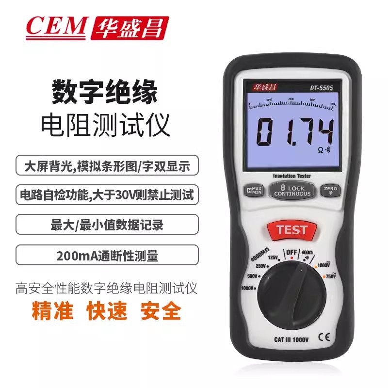 Cem華盛昌DT-5500/5505デジタル絶縁計電気機器絶縁材料手持ち式抵抗計