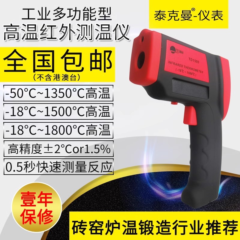 泰克曼高温赤外線温度測定器td135/td1500/1800温度測定銃測温窯炉鍛造