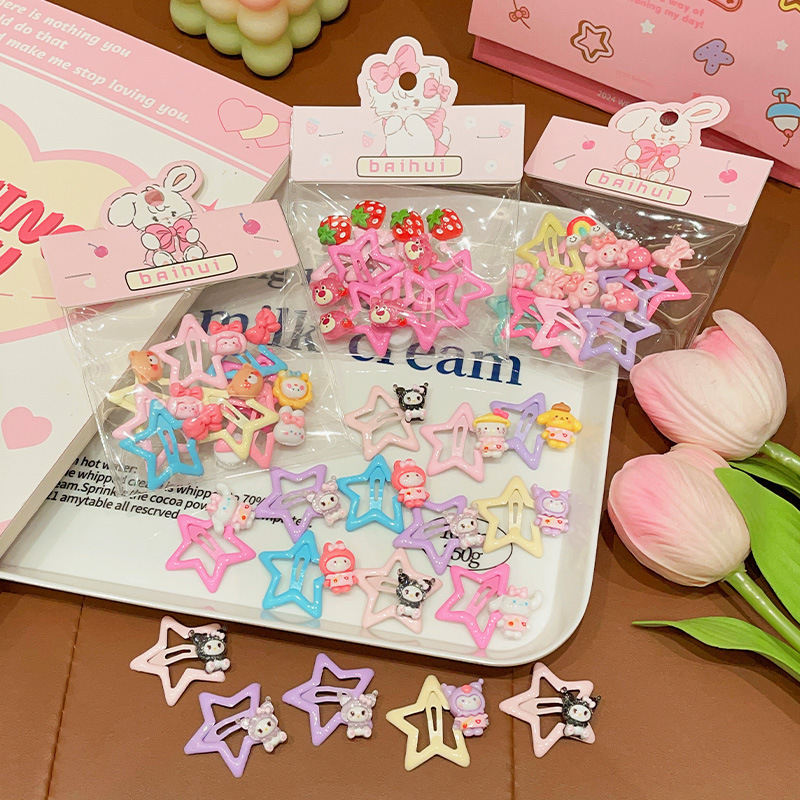 子供の可愛いカラーの透かし彫りの星のヘアピンの頭飾りの女の子の漫画のクロミヘアカードの赤ちゃんの前髪のサイドクリップ