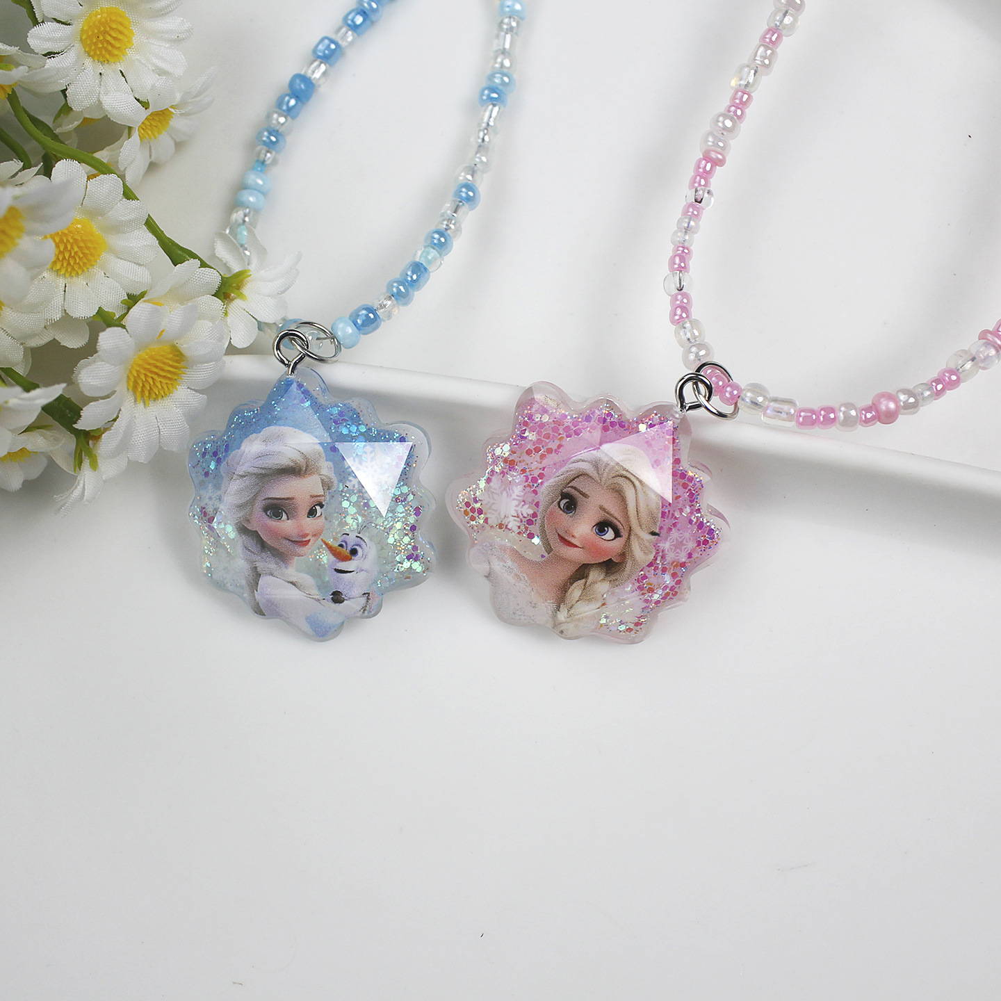 子供用かわいい漫画夜光艾莎プリンセスネックレスアンナ透明ビーズペンダントジュエリー赤ちゃんアクセサリー卸売