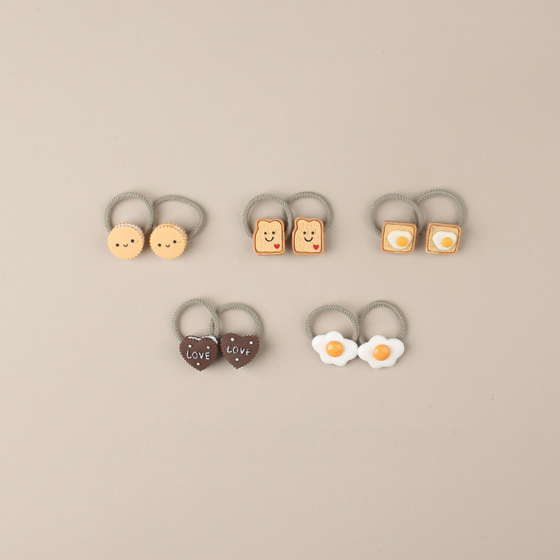 幼児のかわいいアニメの卵の花のビスケットの対のシュシュのひものminiの小さい皮の筋のハンバーグのサンドイッチの髪のひもの飾り