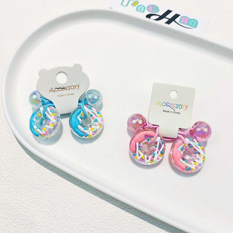 韓国版の色絵の滴る油のドーナツの子供の髪の縄のかわいい円の双頭は髪の毛を刺して皮の筋の髪の輪のアクセサリを巻きます。