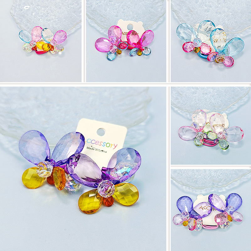 子供用クリスタル蝶々ヘアゴム 女の子手作り高弾性両頭ベビーヘアゴム ダブルポニーテール