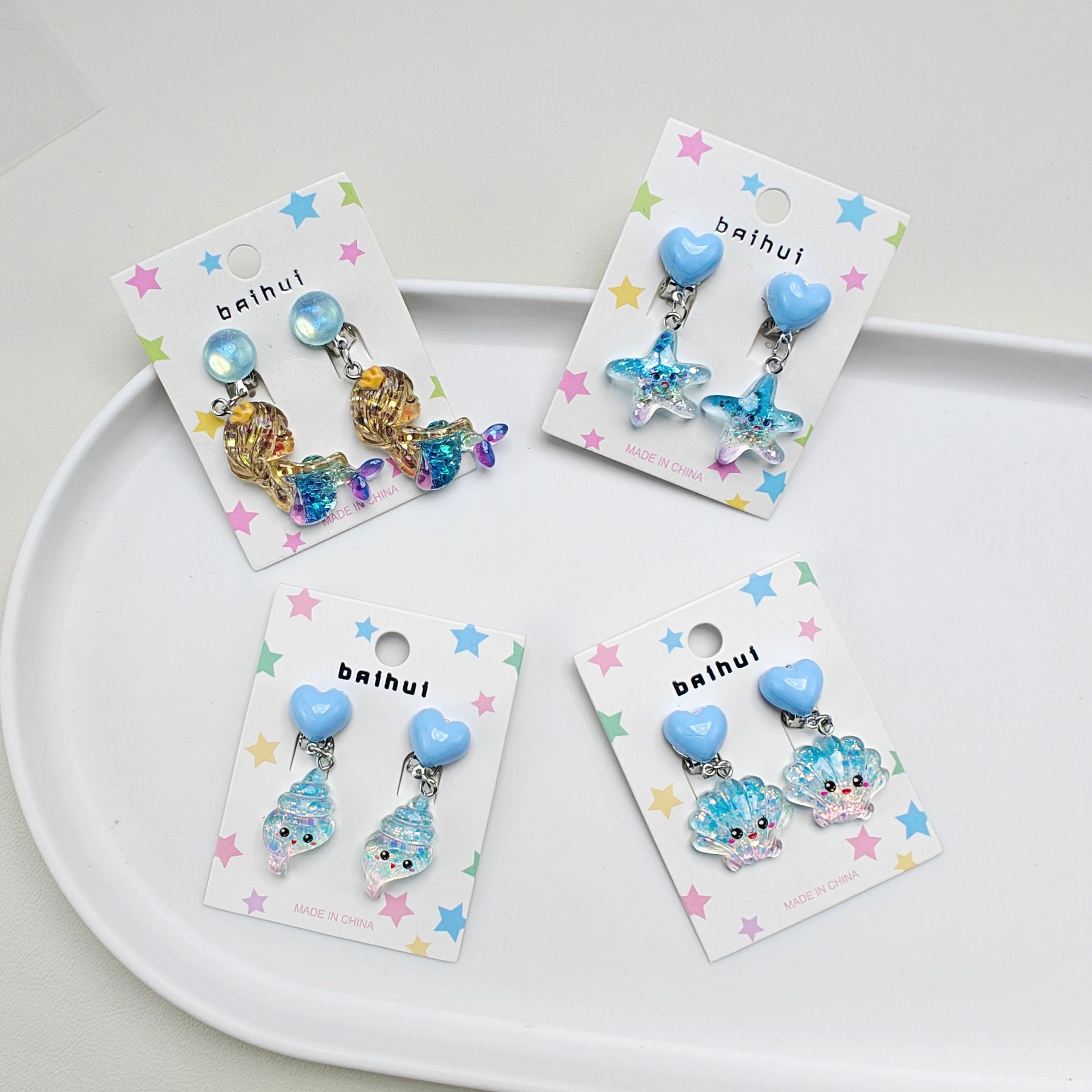 子供のかわいい人魚姫の漫画の耳のクリップの女の子の無痛の防クリップの耳の穴の耳飾りの光る水晶の装飾品