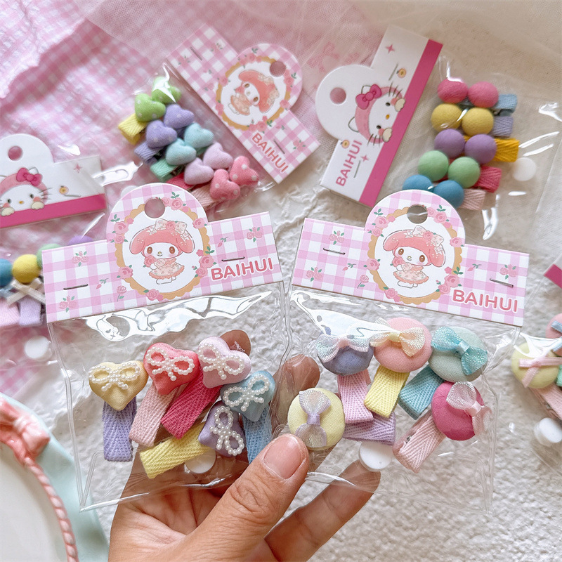 韓国系の子供の春夏プリントの蝶結びのボタンのヘアピンが可愛いです。