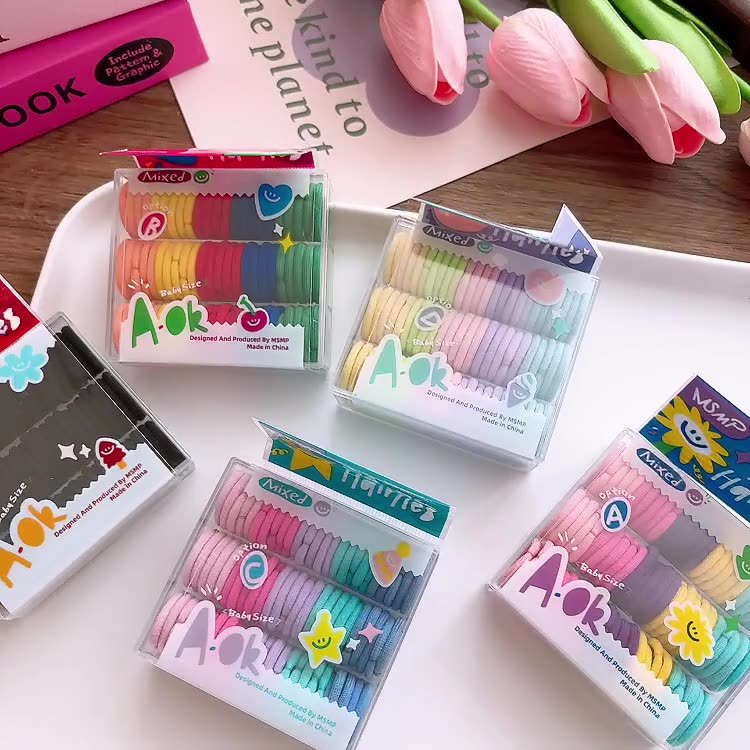 箱入り小型ベーシック子供用親指ヘアバンド編み込みヘアロープ女の子高弾性ヘアロープベビーヘアゴムバンド