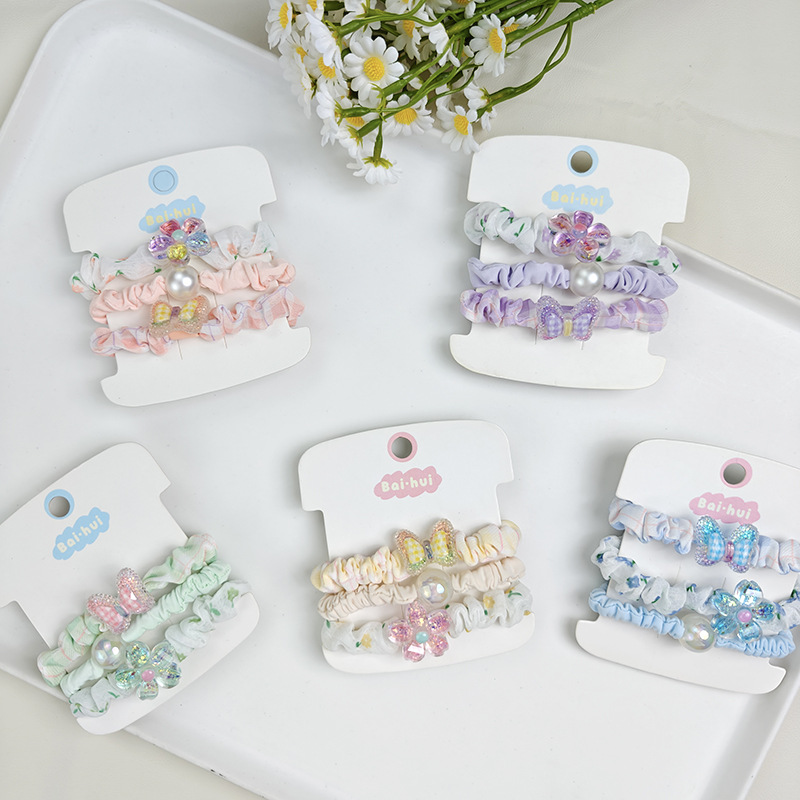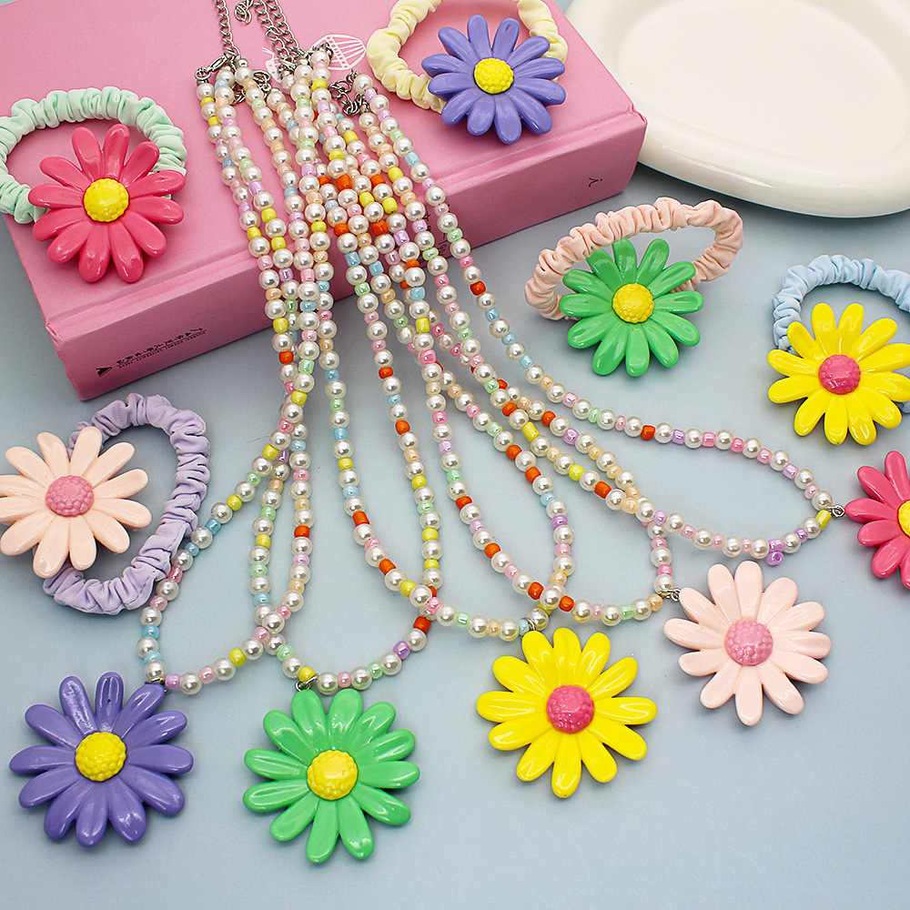 パールフレッシュデイジーシリーズ 花柄ヘアゴムネックレスセット ガーリーで甘いヘアゴム 子供用