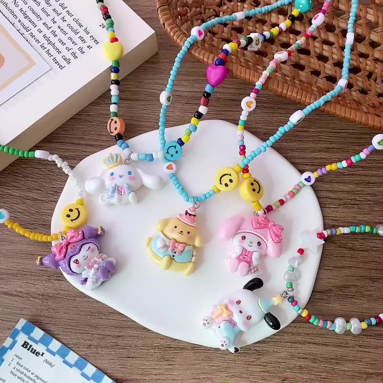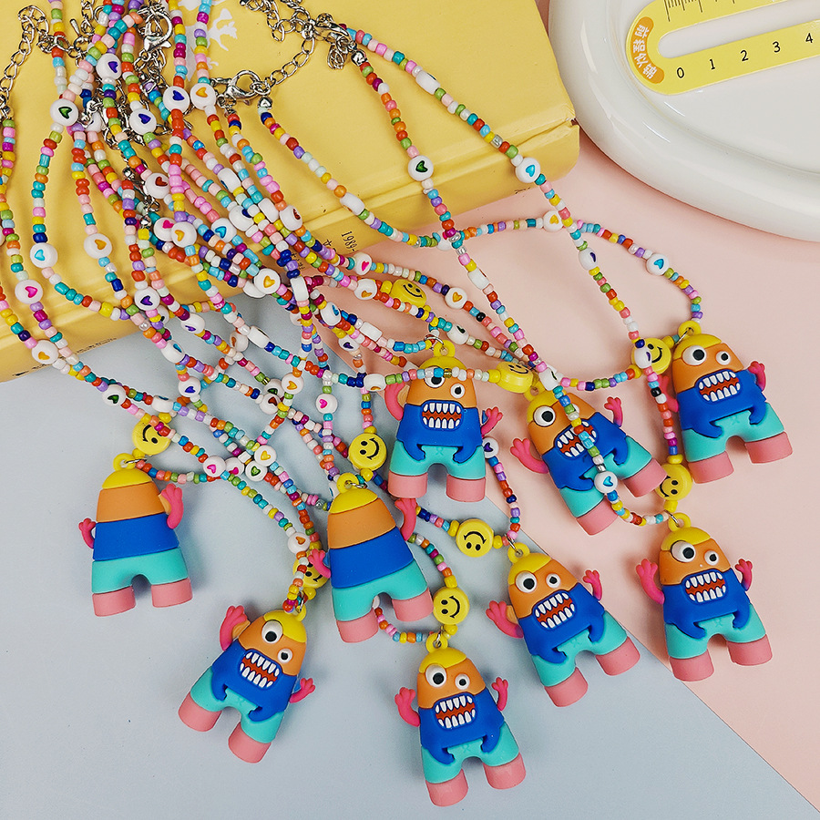 ネットの赤いアクセサリの米珠のネックレスのヒップホップの子供の趣味は色のビーズの鎖のモンスターのペンダントのアクセサリーの卸売りをします。