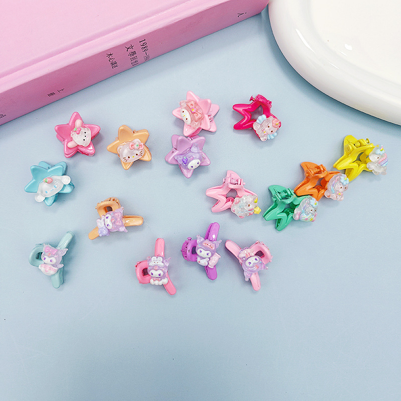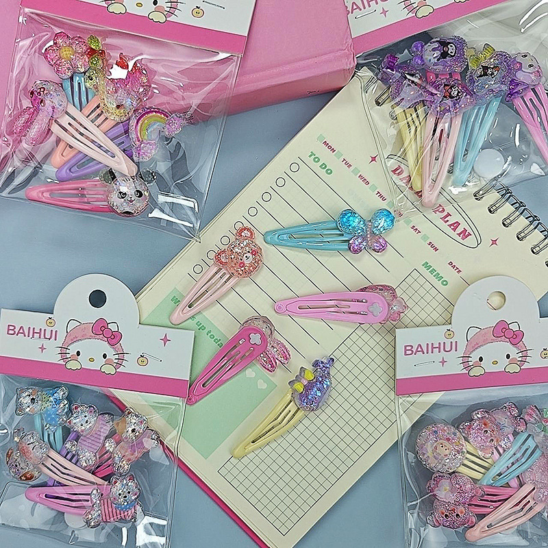 5つ袋入り可爱いクロミヘアークリップ姫前髪つかみクリップ髪饰り子供用トランペットちぎりヘアクリップ髪饰り