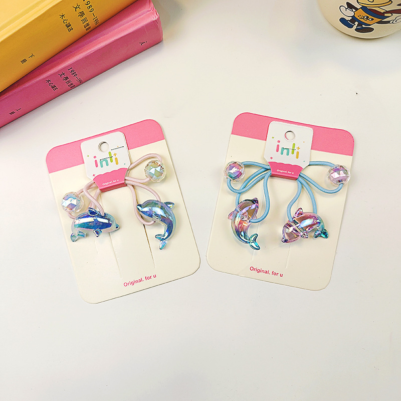 子供のかわいいグラデーションのイルカの髪のひもの高い弾力性の双頭の皮の筋の女の子の赤ちゃんは髪の毛を刺して髪の輪の頭を巻いて飾ります。