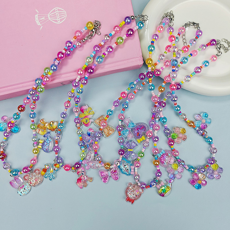 子供の夜の光が透き通っている水晶の漫画のネックレスのカラービーズの女の子のチェーンのポニーポーリーはペンダントのアクセサリーを飾ります。