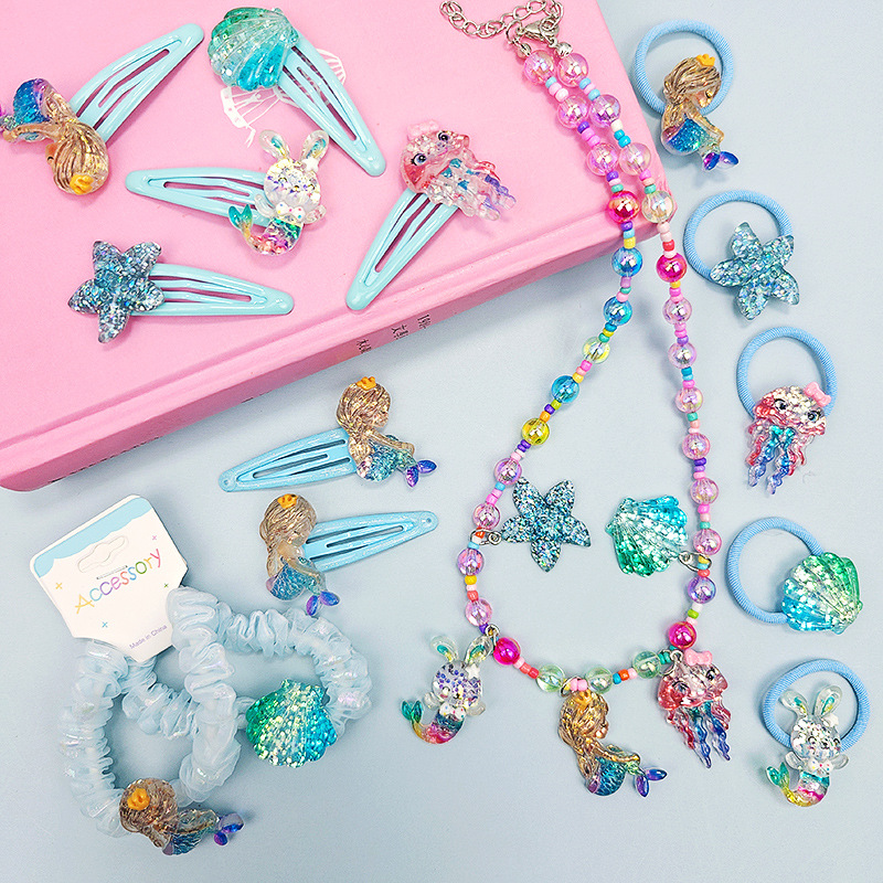 マーメイドシリーズ ヘアアクセサリー かわいい 子供用 プリンセス ネックレス ヘアロープ BBクリップ ブロークンヘアクリップ アラウンドカチューシャセット パール