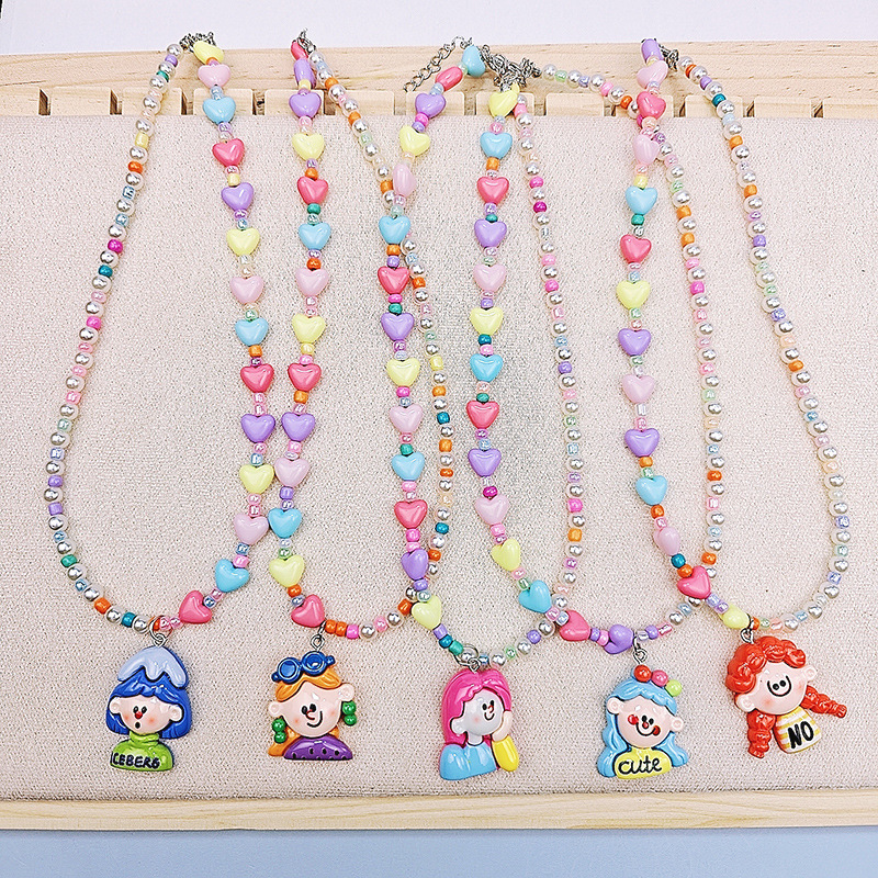 プリンセス樹脂製漫画風ペンダント、三羽の鷗子供用ネックレス、女の子用チェーン、ドーパミン風ネックレス、子供用ギフト