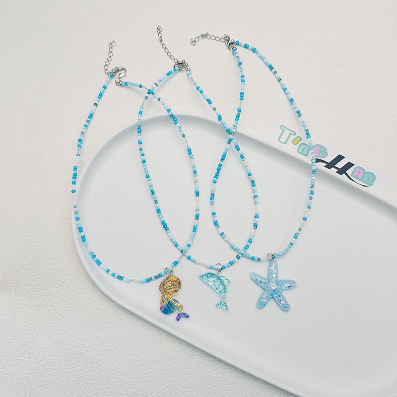 子供のかわいい人魚の小さい米の玉のネックレスのアクセサリーの海辺の海星のペンダントのアクセサリーの王女は旅行品の卸売りを飾ります。