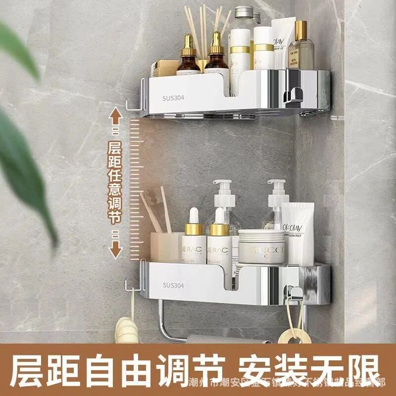 304厚いステンレス三脚浴室コーナーラック物置棚トイレ穴なしトイレ物置棚