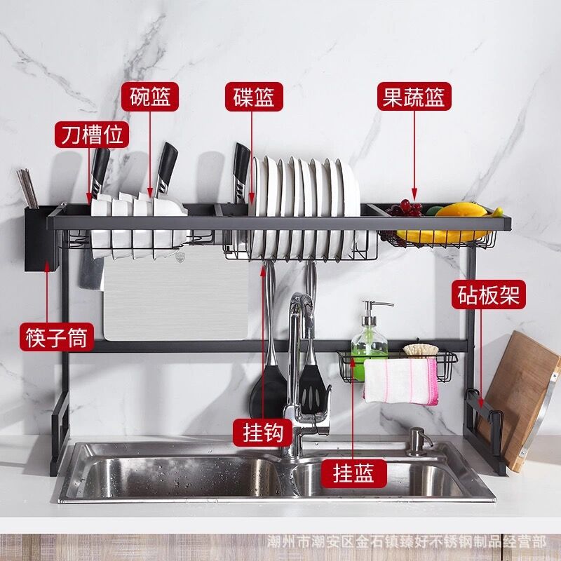 ステンレスキッチン棚黒色水槽干し食器棚多機能収納棚食器皿箸水切り棚まな板棚