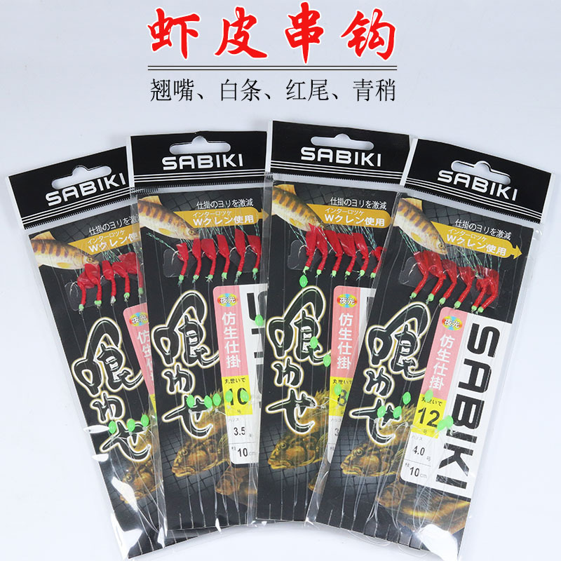 エビの皮のフックの路亜は口を長くして白い条の青のやや魚の皮のフックの赤い皮のスパンコールのバイオニックのフックの白阿吉が棒を投げて仕掛けます。