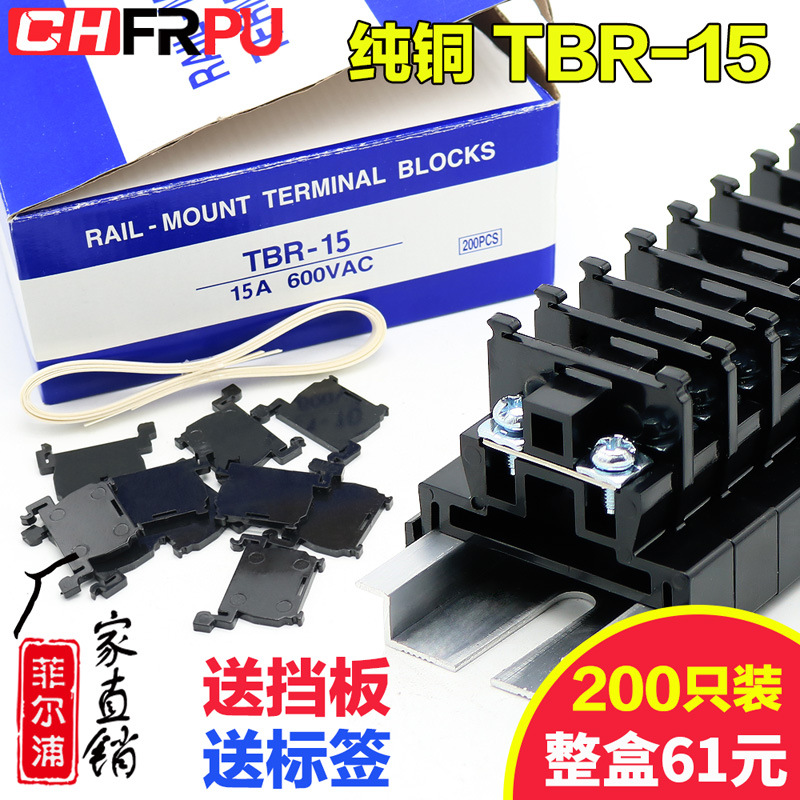 高品質純銅部品 TBR-15 ガイドレール複合端子台 TBR15A 2.5 ミリメートル滑り止め