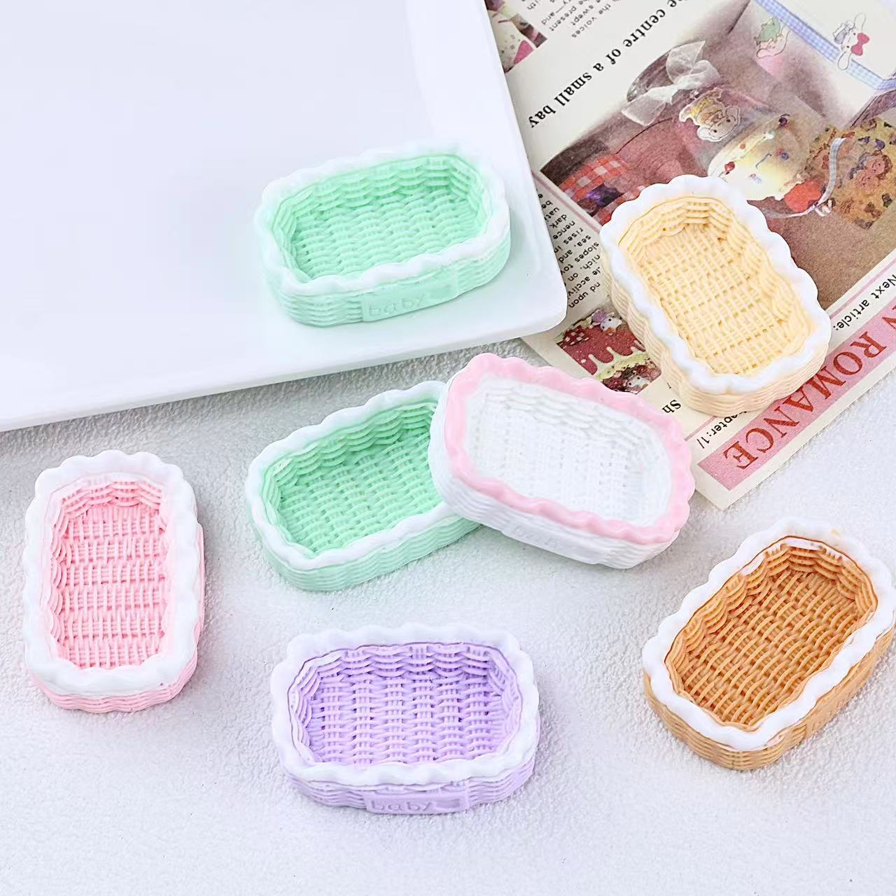 新しい模擬三次元ベビー編みバスケット樹脂アクセサリークリエイティブ DIY 手作りクリーム接着剤ドールハウス装飾品バッチ